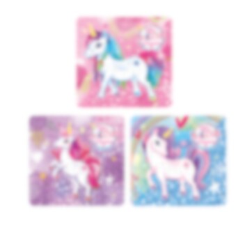 Kaunis pikkupalapeli hienolla yksisarvisteemalla. Hauska lisä synttäripussiin. Palapelin koko on noin 12 x 13 cm kokoinen ja myydään kappaleittain ja lajittelematta.