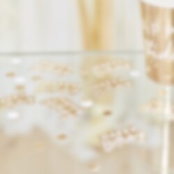 Kultafolioitu pöytäkonfetti Mix it Up -kokoelmasta sekoituksella kultaisia ja valkoisia pisteitä ja tekstillä ''Happy Birthday''. Koristele pöytä näillä kauniilla koristeilla, jos haluat jotain extraa synttäreille tai muihin juhliin. Pakkaus sisältää 13 grammaa.