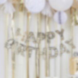 Pahvinen köynnös kultaisen värisenä, joka muodostaa tekstin ''Happy Birthday'' ja kuuluu kokoelmaan Mix it Up. Vaikuttava koriste synttäreille tai muihin juhliin. Köynnös on noin 3 metriä pitkä ja siinä on hapsut, joita heilauttamalla saa aikaan siistin efektin.