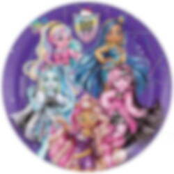 8 värikästä lautasta, joissa on Monster High -hahmojen kuvia. Lautaset on valmistettu pahvista ja niiden halkaisija on noin 18 cm.