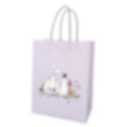 Lahjakassi vaalean lilan pastellin sävyssä satumaisella Muumilaakso-kuvituksella, jonka avulla Muumipeikko ja hänen ystävänsä kutsuvat vieraasi juhliin.