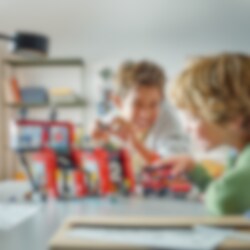LEGO® Cityn upein paloasema tarvitsee lisää vahvistusta tiimiinsä. Lähde joukon jatkoksi suunnittelemaan pelastustehtäviä huippumodernin komentokeskuksen yläkertaan. Laita pylväs valmiuteen varustehuoneeseen ja tarkista, että kaikki on kunnossa autohalleissa 1 ja 2. Kiinnitä tikapuut tai 360 astetta kääntyvä sammutin paikoilleen paloauton takaosaan. Lähetä sitten RC-drone matkaan helikopterin laskeutumispaikalta, ota luotettava pelastuskoira mukaan ja suuntaa uuteen palokuntaseikkailuun!