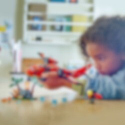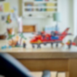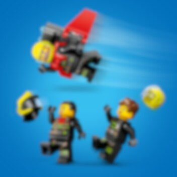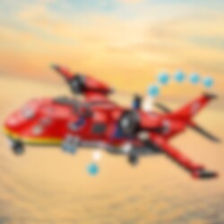 Metsäpalo riehuu hallitsemattomasti kaukana syrjäseudulla! LEGO® Cityn pelastuslentokone on lähetettävä kiireesti apuun. Täytä lentokoneen irtosäiliöt vedellä, käännä nokka kohti yläilmoja ja taltuta liekit. Kaarra matalalta liekkien läheltä ja pudota suuret vesisäiliöt. Ota sitten avuksi tehokkaat sammuttimet ja futuristinen pelastaja rakettireppuineen, sammuta tulipalo ja pelasta päivä. Onnea matkaan!