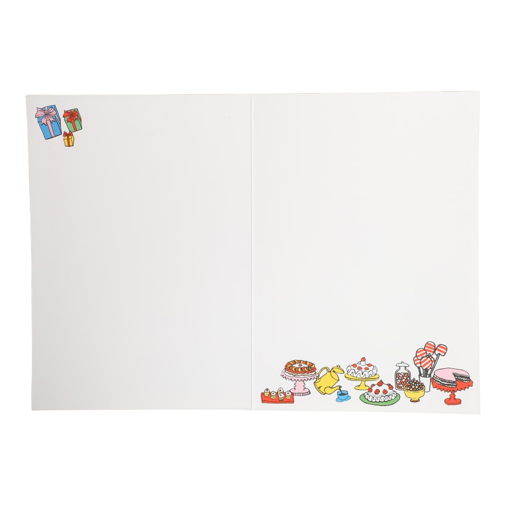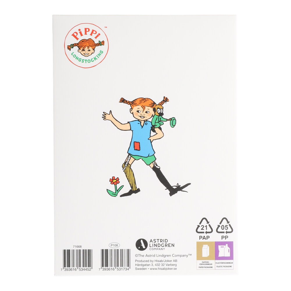Kortin sisällä on runsaasti tilaa henkilökohtaiselle tervehdykselle sekä pieni kuvitus lahjoista ja leivonnaisista, jotka tuovat korttiin juhlavan lisätunnelman. Täydellinen kortti kaikille, jotka rakastavat klassisia tarinoita Peppi Pitkätossusta.
