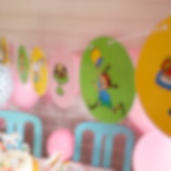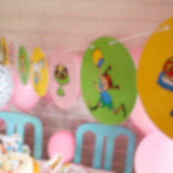 Värikäs viirinauha, jossa on kuvia Pepistä ja hänen rakkaista ystävistään Peppi Pitkätossusta. Vaikuttava koriste Peppi-teemajuhliin. Viirinauha on valmistettu pahvista ja se on 300 cm pitkä. Kuviot ovat noin 16 cm kokoisia.