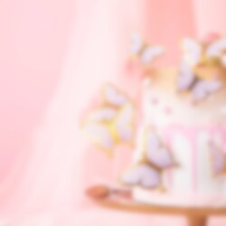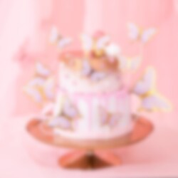 10 kpl kauniita kakkukoristeita lilojen perhosten muodossa tyylikkäillä kultafolioiduilla yksityiskohdilla. Setti sisältää myös 10 joustavaa ohutta tikkuja ja 10 liimapistettä, joilla voit helposti kiinnittää perhoset kakkuusi. Perhosten koko on 5-9 cm.