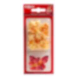 Luo maaginen ja elegantti kakku näillä kauniilla syötävillä vohvelikoristeilla! Setti sisältää 35 pientä kukkaa lämpimissä kullan ja oranssin sävyissä sekä 4 perhosta punaisen ja vaaleanpunaisen sävyissä – täydellisiä antamaan leivonnaisillesi luonnollisen ja hienostuneen ilmeen.