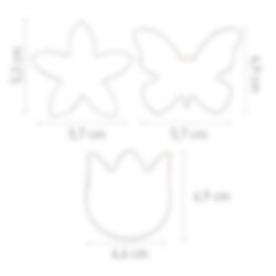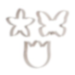 Suloiset kakkumuotit perhosen, kukan ja tulppaanin muodossa. Ne tekevät leipomisesta hauskaa ja kaunista. Täydellisiä kakkujen ja kuppikakkujen koristeluun tai omien keksien tekemiseen juhliin, babyshowereille tai kevään ja kesän juhliin.