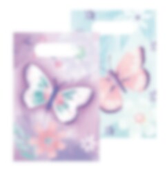 8 kpl paperisia juhlapusseja, joissa on upeita värejä ja kauniita perhosia värikkäiden kukkien keskellä. Täytä pussit makeisilla ja maagisilla yllätyksillä ilahduttaaksesi ystäväsi.