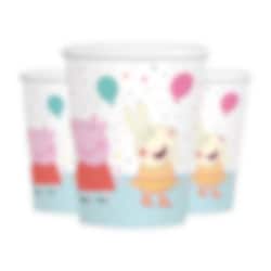8 kpl pahvimukeja ihanissa väreissä kuvalla Pipsa Possusta ja hänen ystävistään suositusta samannimisestä lastenohjelmasta. Mukit ovat n. 9 cm korkeita ja tilavuudeltaan n. 250 ml.