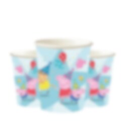 8 kpl pahvimukeja värikkäillä Pipsa Possu -kuvioilla. Mukit ovat noin 10 cm korkeita ja tilavuudeltaan 266 ml, mikä tekee niistä käytännöllisen ja tyylikkään lisän kattaukseen.