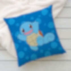 Hieno tyyny, jossa on Pokémonista tuttu Pikachu-kuvio toisella puolella ja Squirtle toisella puolella. Koristele sohvasi tai sänkysi tällä kauniilla sisustusyksityiskohdalla.