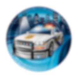 8 kpl pikkulautasia, joissa on kuva poliisiautosta. Pikkulautasten läpimitta on n. 18 cm.