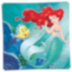 20 kpl servettejä, joissa on prinsessa Arielin kuvio. Serveteissä on 2 kerrosta ja ne ovat auki taitettuina 33 x 33 cm. Valmistettu FSC-sertifioidusta paperista.