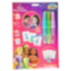 Ihana setti luovia hetkiä varten. Setin avulla lapset voivat luoda omia taideteoksia suosikkiprinsessoillaan! Suositellaan yli 5-vuotiaille lapsille. On hyvä käyttää suoja-alustaa tahrojen välttämiseksi.