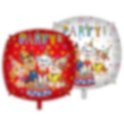 Tyylikäs neliönmuotoinen folioilmapallo, jossa on molemmilla puolilla Ryhmä Hau -kuvio. Hauskaa koriste juhliisi.