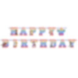 Upea Happy Birthday -viirinauha, jossa on Paw Patrolin eri koirien kuvioita. Viirinauhan pituus on 180 metriä ja kukin kirjain on noin 15 cm korkea.
