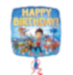Söpö, kuution muotoinen folioilmapallo 'Happy Birthday' -tekstillä, ja kuvalla Nickelodeonin Ryhmä Hau -televisiosarjasta tutuista pelastuskoirista. Folioilmapallo on kaunis koriste synttärijuhliin. Ilmapallon voi täyttää joko heliumilla tai tavallisella ilmalla. Puhallettuna ilmapallo on noin 43 x 43 cm kokoinen.
