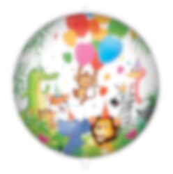 Pyöreä folioilmapallo, jossa on kaksipuolinen suloinen kuva Jungle Balloons -teemalla. Hauskaa koriste juhliisi.