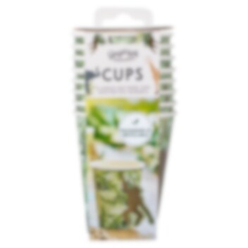 8 vihreää paperimukia palmunlehtikuviolla ja hienolla 3D pop out -apinalla Let's Go Wild -teemalla. Täydelliset viidakoteemaisten juhlien kattaukseen. Mukit ovat noin 9,5 cm korkeita ja niihin mahtuu noin 266 ml. Tuote ja pakkaus ovat FSC-sertifioituja ja pakkaus on kierrätettävissä.