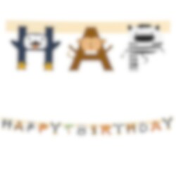 Ihana pahvinen viirinauha, jossa teksti "Happy Birthday" ja hienoja kuvioita erilaisista eläimistä. Viiri on 2 metriä pitkä.