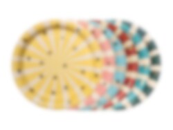 Kata värikäs juhlapöytä näillä sirkusteemaisilla lautasilla! Klassiset punaiset, keltaiset, siniset ja valkoiset raidat sekä kimaltelevat kultaiset tähtiyksityiskohdat. Lautauset antavat kattaukselle leikkisän ja juhlavan tunnelman. Lautaset ovat 18 x 18 cm kokoisia ja täydellisiä alkupaloille, kakulle tai muille herkuille.