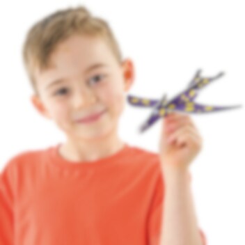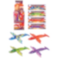 Rakenna oma lennokit dinosaurus! Dinosauruksia on neljä eri mallia jotka myydään yksittäisenä ja lajittelemattomina. Koottuna liitäjän koko on noin 17 x 12 cm.