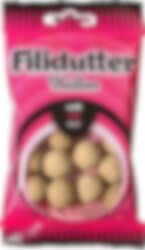 Filidutter Vadelma ovat kovia ja pyöreitä, vadelman makuisia karkkeja. Yhdessä pussissa on 65 grammaa.