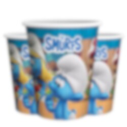 10 kpl söpöjä pahvimukeja, joissa on Smurffit-kuvia. Mukien korkeus on 10 cm ja tilavuus 250 ml.