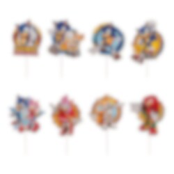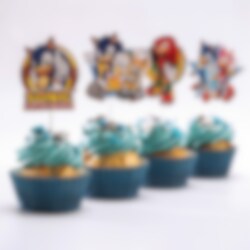 16 kpl. hienoja cake topperseja, joissa on kuvia Sonic the Hedgehog. Täydellinen supersankarisilauksen lisäämiseen leivonnaisiin juhlia varten. Koko vaihtelee 8 ja 10 cm korkeuden välillä.