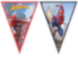 Jännittävä lippuviiri jossa on kuva rakennusten välissä lentävästä Hämähäkkimiehestä. Upea koristeköynnös sopii täydellisesti Spider-Man -aiheisiin juhliin ja se on helppo ripustaa juhlien koristeeksi. Köynnös on noin 2,3 metriä pitkä ja jokainen lippu on 24,5 cm korkea.