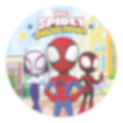 Kakkukuva vohvelista hienolla kuviolla Spidey and His Amazing Friends -sarjasta. Leivo oma kakku Spidey-teeman lastenjuhliin ja lisää vohveli koristeeksi päälle. 20 cm kokoinen kuva on helppokäyttöinen. Vohvelista valmistetut kakkukuvat ovat gluteenittomia ja laktoosittomia, eikä niihin ole lisätty sokeria. Sopii kasvissyöjille.
