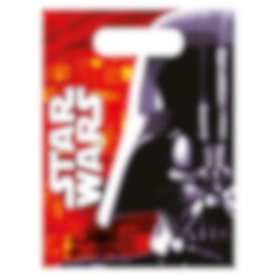 6 kpl juhlapusseja Darth Vader -teemalla Star Wars -sarjasta etupuolella punaisella pohjalla. Täytä pussit karkeilla ja jollain yllätyslelulla ja anna ne sitten kavereille synttärijuhlissa, joiden teemana on Star Wars.