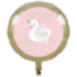 Vaaleanpunaisen, kullan ja valkoisen värinen folioilmapallo kauniilla joutsenteemalla. Vaikuttava koriste syntymäpäiväjuhliin, joiden teemana on Stylish Swan. Ilmapallon halkaisija täytettynä on noin 45 cm ja se täyttyy helpoiten heliumilla.