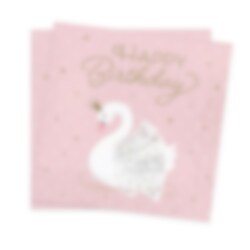 16 kpl vaaleanpunaisia servettejä kauniilla joutsenteemalla sekä "Happy Birthday"-tekstillä ja kultaisilla tähdillä molemmin puolin. Servetit ovat 2-kerroksisia ja niiden koko avattuna on noin 33 x 33 cm.