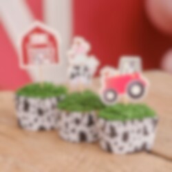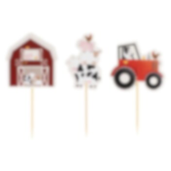 6 kpl Cake Toppersia, joissa on hauskoja maalaistalon kuvia. Upea koriste juhlien leivonnaisiin. Korkeus 10 cm.