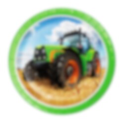 8 kpl pieniä pahvilautasia hauskalla traktorikuva-aiheella. Lautasten halkaisija on noin 18 cm.