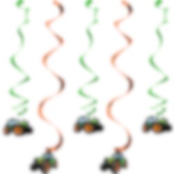 Riippuvat koristeet siisteillä traktorin kuvilla. Ripusta koristeet tunnelmanluojiksi juhlatiloihin. 2 kpl koristeita on n. 99 cm pitkiä ja 3 kpl n. 76 cm.