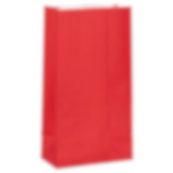 12 kpl punaista paperista tehtyä juhlapusseja. Pussit ovat noin 25 x 14 cm kokoisia.