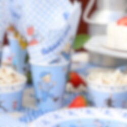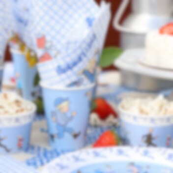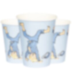 8 kpl pahvimukeja hauskoilla Eemelin kuvilla Astrid Lindgrenin Vaahteramäen Eemeli -kirjoista. Mukit ovat noin 10 cm korkeita ja niihin mahtuu noin 250 ml.