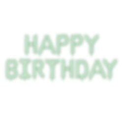 Erittäin kaunis ilmapallonauha, joka muodostaa sanat "Happy Birthday" kauniissa vaaleanvihreän sävyssä. Viirinauha on 340 cm pitkä. Jokainen ilmapallo on 35 cm korkea. Ilmapalloissa on itsestään sulkeutuva venttiili. Ne voi helposti täyttää ilmapallopumpulla tai mukana tulevalla pillillä.