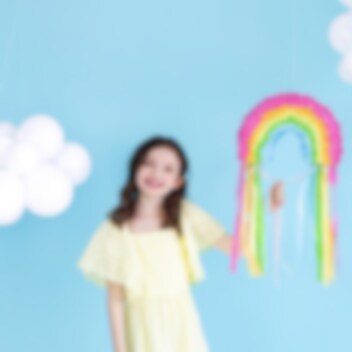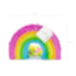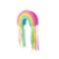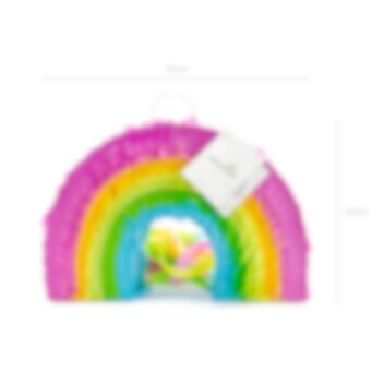 Upea värikästä sateenkaarta esittävä pinata. Hauska lisä juhliin leluna tai pöytäkoristeena. Täytä pinata karkeilla ja leluilla, ja anna lasten vetää nyöreistä, ja katso kuka tyhjentää sen. Pinata on n. 30 x 20 x 10 cm ja myydään tyhjänä.