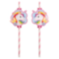 8 kpl valkopinkkiraidallisia pahvipillejä kauniilla yksisarvisteemalla. Hieno yksityiskohta pöytäkattaukseen ennen synttäreitä, joiden teemana ovat yksisarviset. Pillien pituus on noin 19 cm.