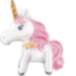 Upea, suloista yksisarvista esittävä foliopallo. Käytä synttärijuhlien pöytäkoristeena! Pallo on täytettynä noin 63 cm kokoinen. Älä käytä heliumia.