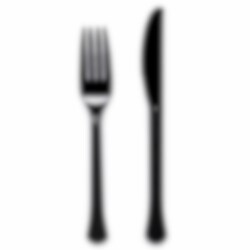 24 kpl mustaia muoviruokailuvälineitä sisältää 12 veistä ja 12 haarukkaa. Setti tarjoaa käytännöllisen ja ympäristöystävällisen ratkaisun seuraavaan juhlaan tai tapahtumaan. Nämä aterimet ovat uudelleenkäytettäviä ja täydellisiä yksinkertaisiin tilaisuuksiin, kun haluat hienon silauksen tekemättä kompromissia ympäristöystävällisyydestä. Musta väri antaa juhlavan ja kutsuvan tunnelman ja sopii erinomaisesti erilaisiin teemoihin ja tilaisuuksiin. Aterimet kestävät konepesun.