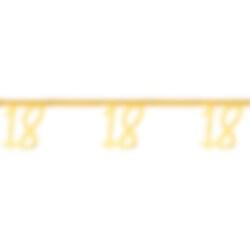 Koristeellinen viirinauha pahvista. Siinä on kiiltävää kultafoliota ja numero 18. Viirinauha on erinomainen koriste 18-vuotisjuhliin. Jokainen numero on 18 x 23 cm kokoinen ja itse viirinauha on 250 cm pitkä.