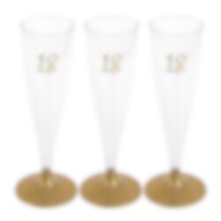 6 kpl kauniita ja käytännöllisiä kertakäyttöisiä samppanjalaseja. Muovilasit ovat tyylikkäät ja sopivat täydellisesti 18-vuotisjuhliin.