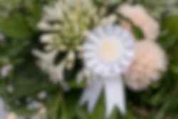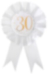 Kaunis valkokultainen rusetti, jossa on numero 30. Ruusuketta voidaan käyttää sekä koristeena esimerkiksi kukka-asetelmissa että synttärisankarin asusteena 30-vuotispäivänä. Ruusuke on halkaisijaltaan 8 cm ja 15 cm korkea.