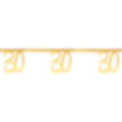 Koristeellinen viirinauha pahvista. Siinä on kiiltävää kultafoliota ja numero 30. Viirinauha on erinomainen koriste 30-vuotisjuhliin. Jokainen numero on 18 x 23 cm kokoinen ja itse viirinauha on 250 cm pitkä.