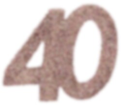 6 kpl. isoja ja kimaltelevia ruusukullanvärisiä konfetteja 40-vuotisjuhliin. Konfetti on muotoiltu numeroksi 40 ja ne ovat 6 x 6 cm kokoisia. Ne on valmistettu pahvista.